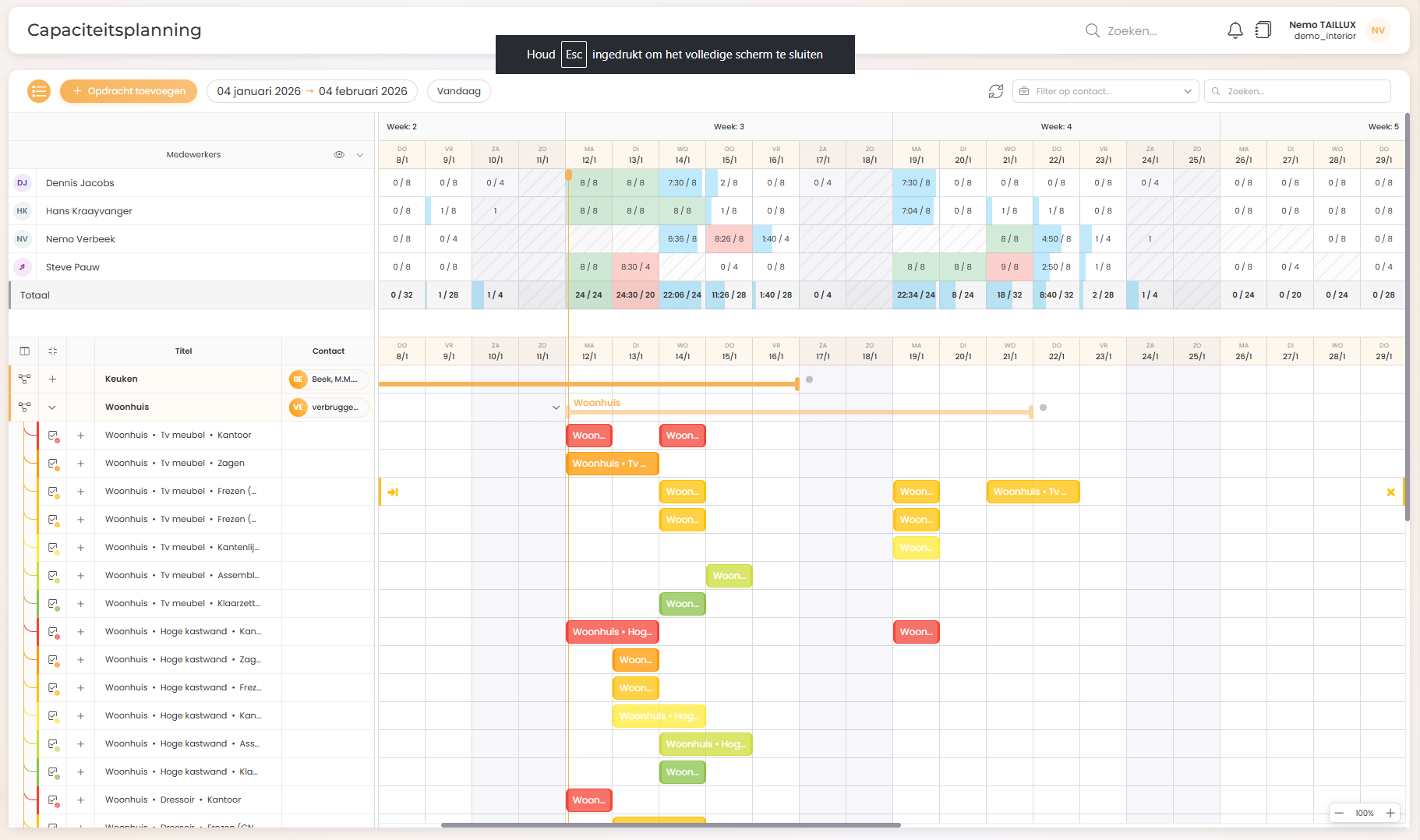 Zo werkt de Capaciteitsplanning in Hello Interior