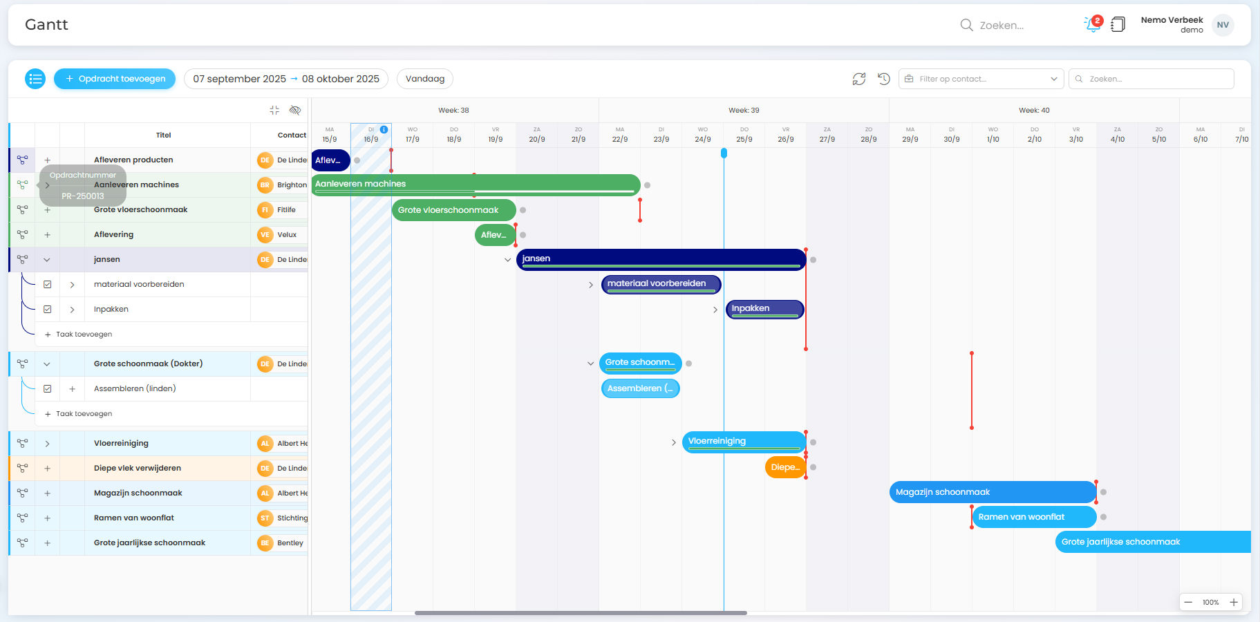 De Gantt-functie geeft je de flexibiliteit om eenvoudig taken te verschuiven, prioriteiten aan te passen en afhankelijkheden te beheren. Elke wijziging wordt direct zichtbaar in het schema, waardoor je snel kunt inspelen op veranderingen in het project of in de productie.